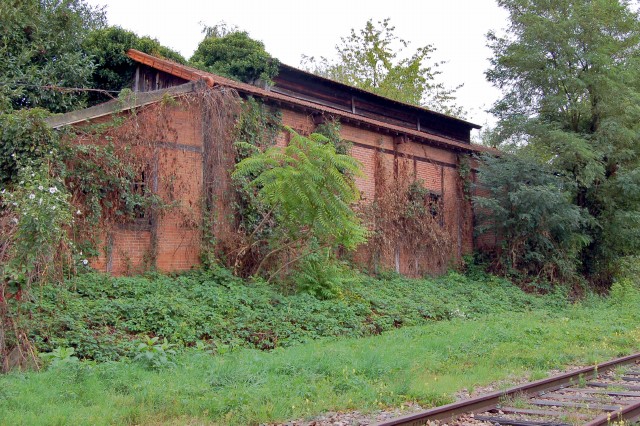| Commentaire photo - On distingue au premier plan la voie SNCF sans activité. Le PN 191 se situe vers la gauche, à faible distance. | |