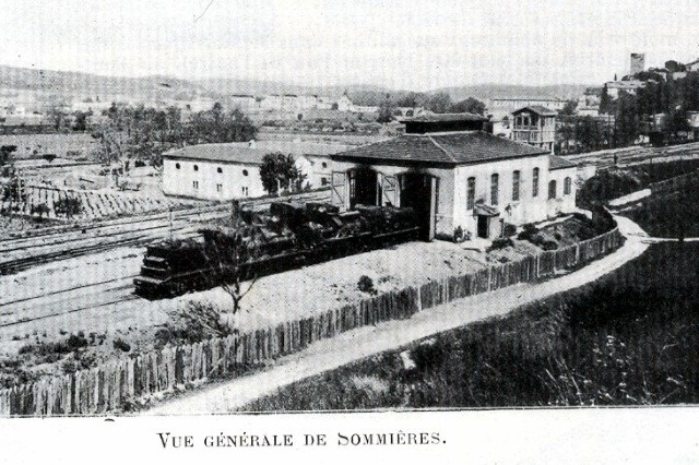 | Observations - Au sud-est de la gare de Sommières, le long du chemin du Mas de Nazon, au pk 725,32, l'annexe-traction comprenait un pont tournant et une remise pour deux machines. Repère de nivellement : 33,608 m. |