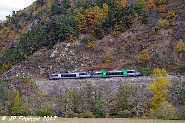 | Commentaire photo - Ces X 73500, en résidence dans des régions différentes, jouent les duettistes sur un Aubrac montant assurant le trajet Clermont - Neussargues. Au demeurant, on ne sait plus très bien qui assume ce train : InterCités-peau de chagrin , TER Occitanie ou OUI-Voyages SNCF. | |