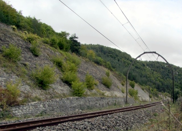 | Observations - C'est l'un des nombreux murs de soutènement qui, de part et d'autre de la zone des Trois Tunnels, séparent la voie ferrée en bas de l'ex-N 9 en haut. | |