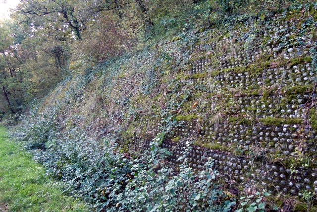 | Commentaire photo - Ce perré en galets n'est pas banal. Les constructeurs ont récupéré un matériau local, provenant de l'érosion des reliefs proches du Sidobre et du Rouergue. La direction de Castres est à gauche. | |