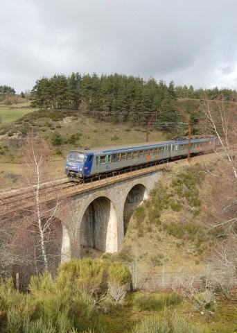 Commentaire photo - Le TER Saint Chély d'Apcher - Millau vient de s'engager sur l'ouvrage qui compta jadis une seconde voie. | |