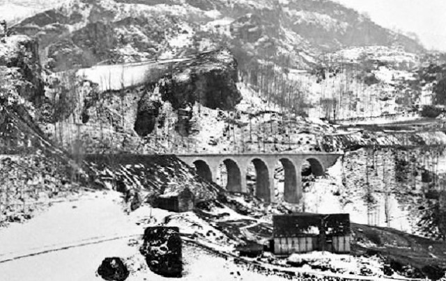 Observations - 5 arches de 12 m. Rampe 30 pour mille. Maçonnerie, courbe de 300 m de rayon. Commune de Thiézac. Repère de nivellement : 888,445 m. |