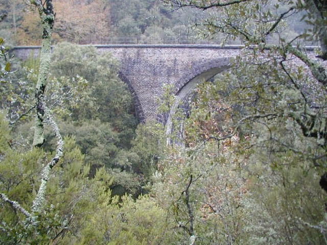 | Commentaire image - Le viaduc de Cessenades, le plus haut du parcours, marque l'extrémité de la seconde invagination que décrit la ligne dans des vallons latéraux pour perdre toujours plus d'altitude. Ce faisant, elle retrouve ici le territoire de Saint Privat de Vallongue. Elle quitte définitivement Saint Frézal de Ventalon qui forme, depuis le 1er janvier 2016, avec Saint Andéol de Clerguemort, la nouvelle commune de Ventalon en Cévennes. La direction de Sainte Cécile d'Andorge est à droite. | ![]() |