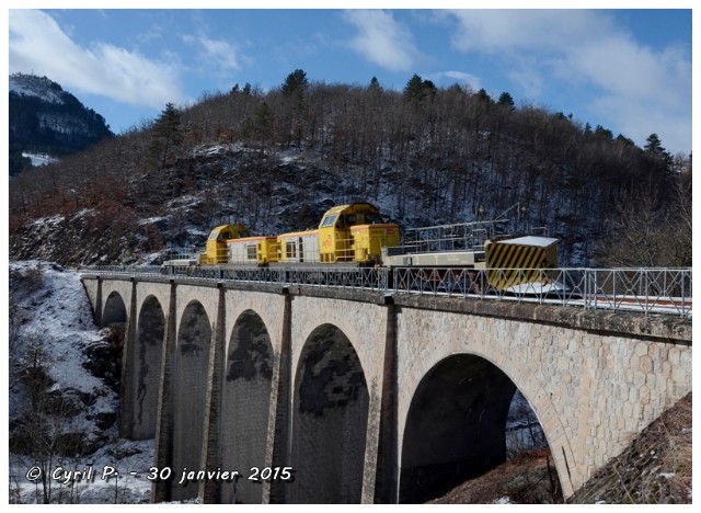 | Commentaire image - Cette photographie est - à priori - rassurante, car elle laisse à penser que la SNCF n'a pas abandonné toute velléité d'assurer le déneigement de ses lignes en hiver. Elle aurait pu confier cette tâche aux premières journées chaudes du printemps. Le futur - mais incertain - contournement est de Mende (N 88) devra aussi franchir par un viaduc le ravin du Bouisset. | ![]() |