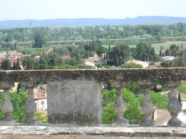 | Commentaire photo - On distingue, tout au fond, la chaîne des Alpilles qui festonne le ciel provençal, et, sous les frondaisons, l'interminable viaduc qui survole l'ancienne plaine de confluence du Rhône et du Gardon. La photo est prise depuis la terrasse du château de Montfrin (XVIIème), actuelle propriété de la famille Servan-Schreiber, où Pierre Mendès-France aimait séjourner. | |