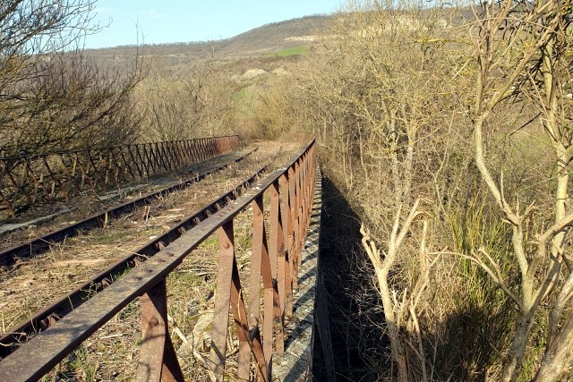 | Commentaire photo - La plate-forme vient d'être débroussaillée, en prévision du prolongement de la voie verte Saint Affrique - Saint Jean d'Alcapiès jusqu'à Tournemire. Au fond, la voie s'apprête à rejoindre la ligne des Causses en direction du nord. | |