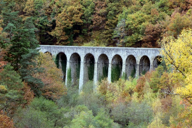 Commentaire image - Est-ce la nature automnale qui sert de parure au viaduc de Ramenac ou bien est-ce le contraire ? | ![]() |