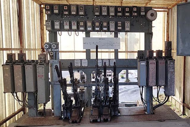 | Commentaire photo - L'existence à Meymac d'une bifurcation, et le possible croisement de trains, conservent une utilité incontournable à cette installation sans âge, qui ne semble devoir être l'objet d'aucune volonté de modernisation. | |