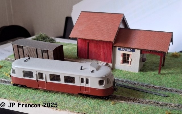 | Commentaire image : Une main habile a ressuscité la gare de Soursac, quand, tout près, le Viaduc des Rochers Noirs était entièrement restauré et ouvert aux circulations douces. Pendant l'été 2025, plusieurs dizaines de milliers de visiteurs se sont pressés aux abords de l'ouvrage, sans doute plus que de voyageurs transportés par le tacot pendant toute sa carrière. | ![]() |