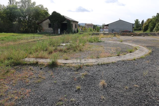 | Commentaire image - Non, il n'y a jamais eu de pont tournant à Billom : les machines circulaient cabine en avant quand elles descendaient à Vertaizon. Ce demi-cercle est un vestige du socle de la sauterelle installée vers 1984 par la DDE d'alors pour décharger d'épisodiques convois de sel de déneigement. L'ancien plateau de la gare est vu en direction du terminus. | ![]() |
