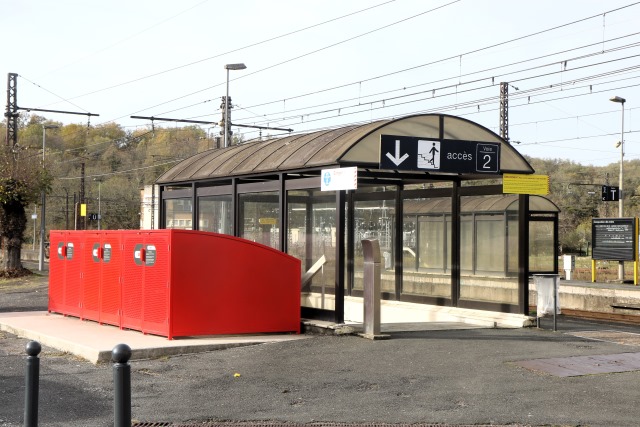 | Observations - Des boxes à vélo sécurisés en libre service de marque VEL'BOX et de modèle ANGERS ont été installés le long du passage souterrain du quai impair. Leur verrouillage est opéré à l'aide d'un code personnel à 4 chiffres. | |