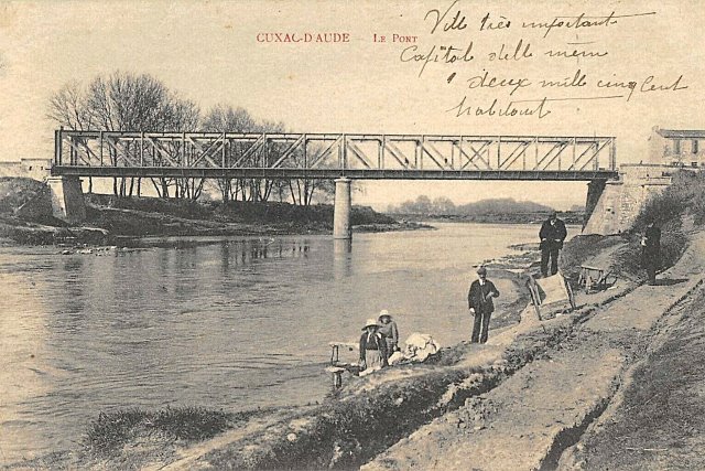 | Commentaire photo - Route et voie ferrée se partageaient la "cage", qui a tenu jusqu'en 1990, avant d'être remplacée par un tablier en béton. Le village de Cuxac d'Aude se déploie à droite en direction d'Ouveillan. | |