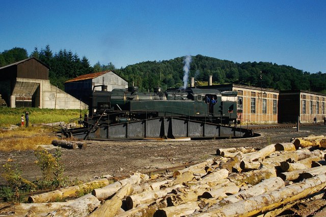 | Commentaire photo - Le petit dépôt de Bort n'a pas survécu à l'érection du barrage sur la Dordogne, dont la retenue a noyé en 1952 la ligne en provenance d'Eygurande_Merlines. Le service des 141 TA a cessé en 1970. | |