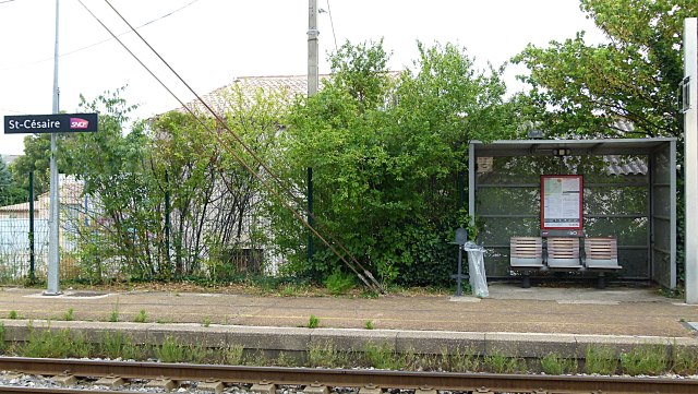 | Commentaire photo - En 2024, la fréquentation de la halte de Saint Césaire était d'une centaine de voyageurs par jour, deux sens confondus. C'est peu, sachant que l'on est en pleine zone urbaine. | |