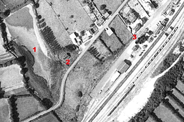 | Commentaire image : Sur cette photographie aérienne, on identifie la retenue d'eau (1), l'usine élévatoire avec l'ombre de sa cheminée (2) et la cohorte des châteaux d'eau (3). Seul le plan d'eau a résisté à la traction électrique : il est bordé par la rue de... l'Etang. | ![]() |