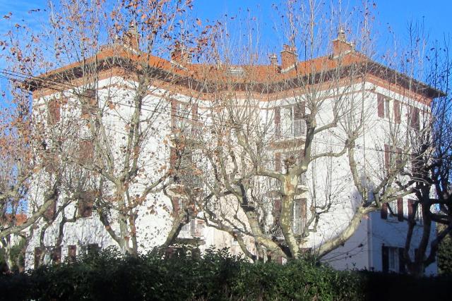Commentaire photo - A 300 m à vol d'oiseau de la gare d'Arles, la cité dresse, rue Pierre Semard, quatre bâtiments en équerre encadrant une construction centrale. Les balcons ont troqué pour des gardes-corps métalliques leurs typiques balustrades blanches en ciment ajouré, d'un modèle analogue à celui qui délimitait le domaine ferroviaire aux abords des stations. Des terrains de sports complètent l'ilôt urbain. | |