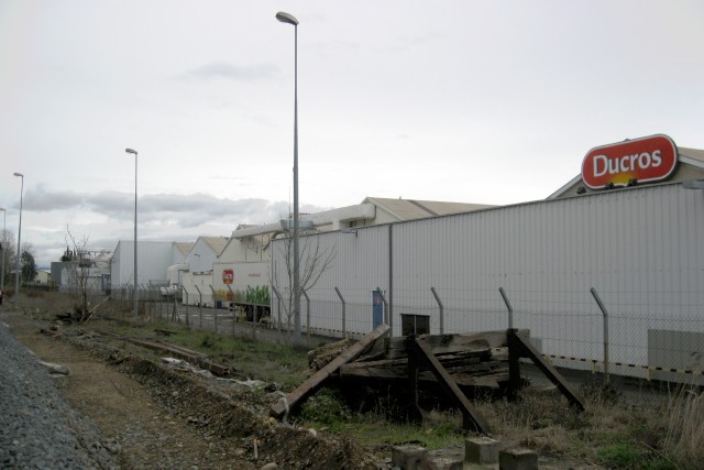 | Commentaire photo - Un butoir en décomposition, des traverses entassées pèle-mêle, des rails jetés çà et là, c'est tout ce qu'il reste de ce long embranchement menant à l'usine Célatose, qui produisait des couches-culottes jusqu'à sa fermeture en 1995. Reste à savoir si l'usine d'épices à droite - dont il n'est pas sûr que tous les salariés se décarcassent depuis qu'ils entendent parler de délocalisation en Pologne - utilise les camions de Géodis. La photo est prise en direction de Carpentras. | |