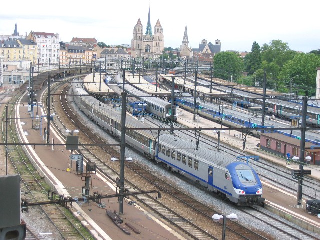 Observations : Plus les gares sont importantes, plus elles sont difficiles à photographier dans leur ensemble, coté cour, comme côté quais. A Dijon, la rue des Perrières offre une vue panoramique des installations, malheureusement du côté où le trafic est le moins dense. | |