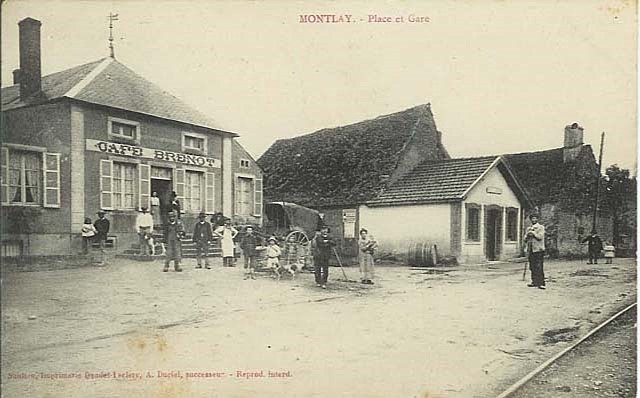 | Commentaire photo : A droite du café Brenot, en direction de Saulieu, l'entourage des fenêtres du petit bâtiment, aujourd'hui disparu, trahit son affectation au tacot. | |