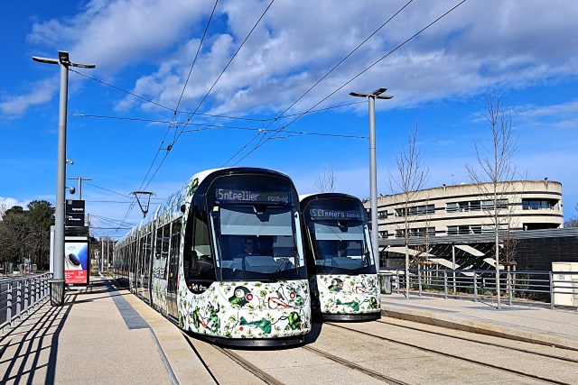 | Observations : La ligne 5 fait un crochet pour desservir le Campus Agropolis, dont une large banderole proclame la vocation : "Ici, des centaines de scientifiques travaillent au quotidien au service d'une agriculture et d'une alimentation durables pour les territoires occitans, méditerranéens et tropicaux". A l'heure du malaise paysan et de la malbouffe, il y a loin de la coupe aux lèvres. | |