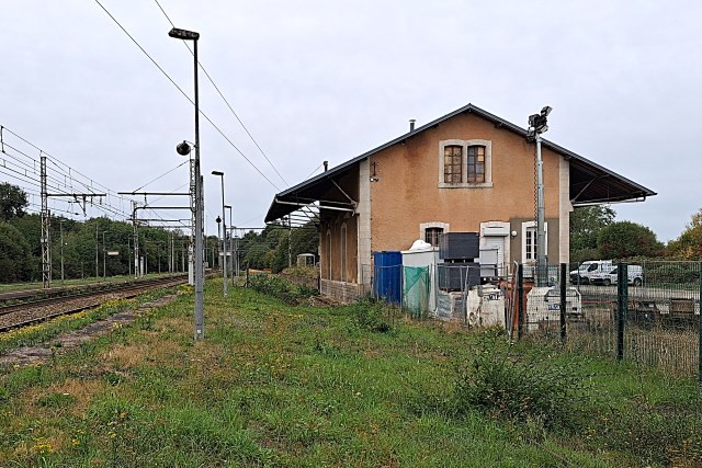 | Observations - La cour des marchandises se déployait côté pair dans le prolongement de la gare des voyageurs. A l'origine, deux voies encadraient la halle et le quai découvert. | |