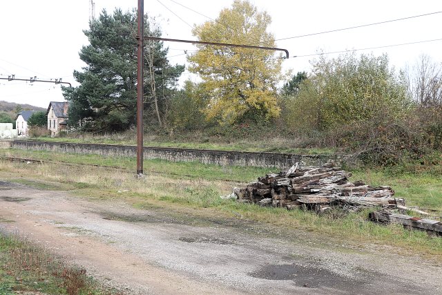 | Commentaire photo - Vestige d'une époque sans poids lourds encombrants et agressifs, le quai découvert est devenu un parc arboré, à deux pas d'un tumulus de traverses agonisantes. | |