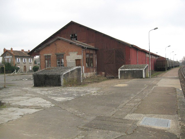 Commentaire photo - Borné par des heurtoirs dignes du Mur de l'Atlantique, le quai couvert PLM étire ses travées en direction de Moulins, face à l'ancien BV des tacots du Bourbonnais. | |