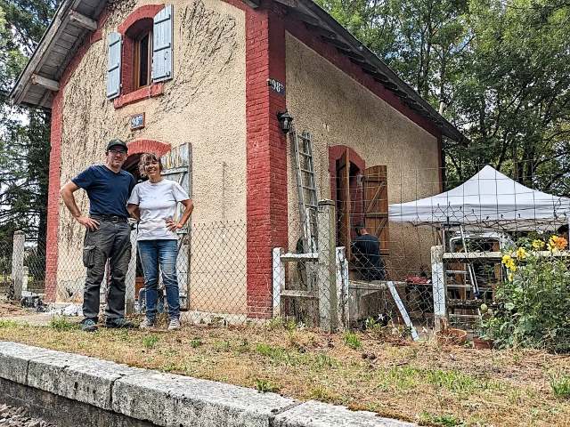 | Commentaire image : Amoureux des chemins de fer, les nouveaux propriétaires des lieux ont dégagé la maisonnette, après l'avoir arrachée aux griffes de la municipalité qui voulait faire table rase de l'ancienne halte de Malemort_Lafont. | ![]() |