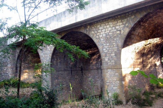 Commentaire photo - Les trois arches, vues en direction de Lyon, supportent un couronnement remanié. | |