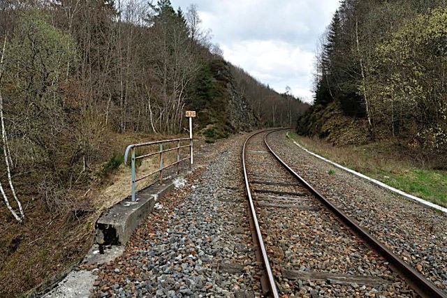 | Commentaire photo - Non, non, non, non, la ligne n'est pas morte, car les rails brillent encore. C'était au printemps 2013. La vue est prise en direction de Clermont Ferrand. | |