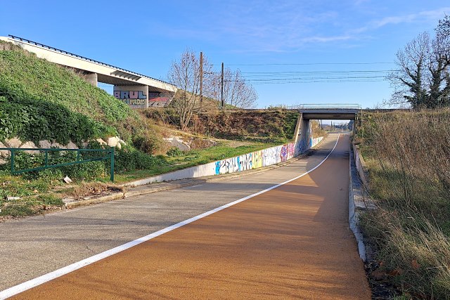 | Commentaire photo - A droite, la ligne va pénétrer dans le tissu industriel et urbain du chef-lieu de la commune la plus étendue de France. | |