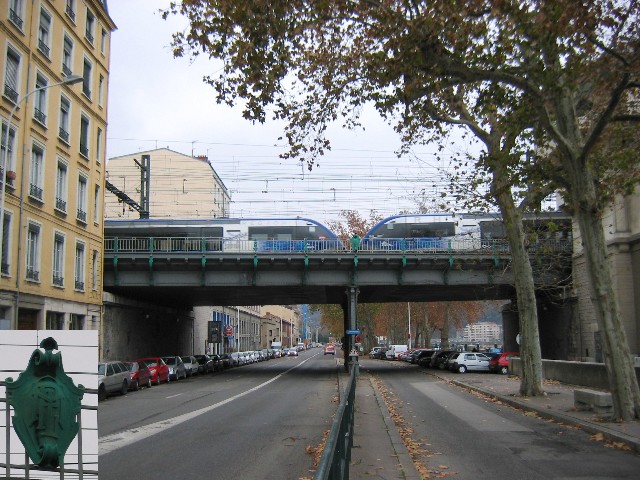 Observations - Ce pont, constitué de deux travées avec piliers métalliques sur trottoir central, prolonge le viaduc de la Quarantaine sur la rive gauche de la Saône. | |
