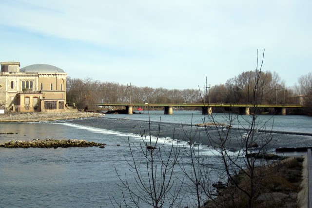 Commentaire photo - Face au château Art Nouveau d'un richissime fumeur d'opium, l'Hérault, franchissant un ultime barrage, rejoint le niveau de la mer et se fait Grau. La direction de Sète est à droite. | |