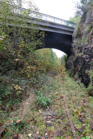 | Commentaire photo - Sous un pont en arc élargi façon-béton, le "jardin botanique" est vu en direction de Saint Etienne. | |
