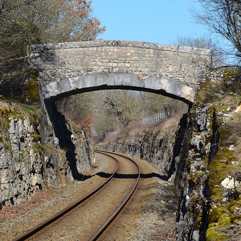 | Commentaire photo - Franchi par un sentier de pêcheur s'apprêtant à dégringoler vers l'Alzou à gauche, cet ouvrage couronne une tranchée rocheuse s'incurvant depuis la direction de Brive. | |