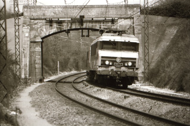 | Commentaire photo - En mai 1980, la CC 6515 (1970-2004) aborde la première courbe sérieuse de la ligne Paris - Toulouse, qui, des abords d'Argenton sur Creuse à ceux de Caussade, présente un profil en plan aussi exigeant que son profil en long. | |
