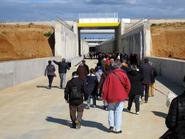 | Commentaire photo - Il y avait foule ce jour-là pour parcourir à pied la tranchée couverte du raccordement fret, à l'invitation d'Oc'Via et de Nîmes-Métropole, dont le Président se voulait confiant quant à la réalisation d'un pôle TGV ici-même. | |