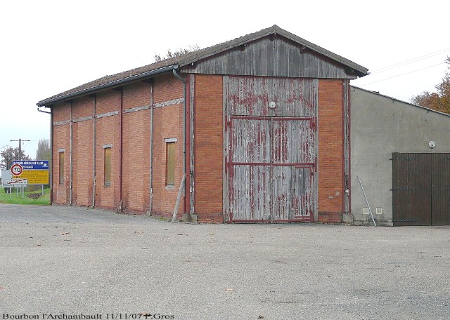 | Commentaire photo - Cette remise en briques date peut-être de la courte période où Bourbon l'Archambault fut terminus de la ligne en provenance de Moulins, tandis que les travaux s'achevaient en direction de Cosne sur l'Oeil. | |