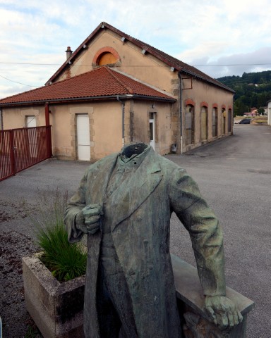 | Commentaire photo - Cette statue acéphale est celle de René Viviani (1862-1925), député puis sénateur de la Creuse, co-fondateur de l'Humanité avec Jean Jaurès et Président du Conseil lors de la déclaration de guerre en 1914. Cette représentation en bronze de l'homme politique fut décapitée en 1962 en Algérie, sa terre natale, avant d'être rapatriée à Bourganeuf. A l'occasion du centenaire de la mobilisation générale qu'il a signée, la statue de Viviani devait être déplacée devant l'Hôtel de Ville et retrouver un visage tout neuf. | |