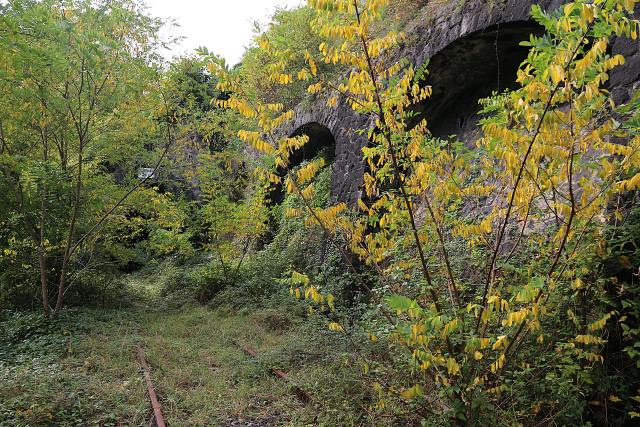 | Commentaire photo - Pour la voie unique, c'est déjà l'hiver. Ces belles arcades succèdent au tunnel de Tournaire dont on devine le débouché côté Noirétable. | |