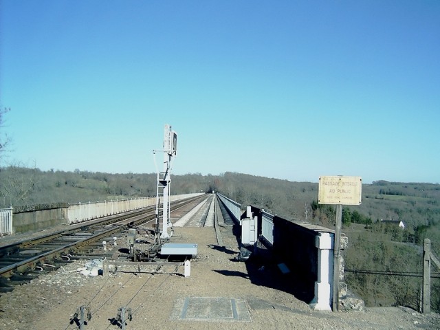 | Observations - Métallique. Domine la Creuse. Deux voies uniques juxtaposées : celle de la ligne Montluçon - Saint Sulpice au nord, celle de la ligne Busseau - Aubusson au sud. | |