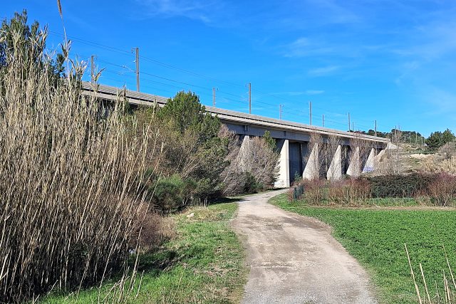 | Observations - La LGV Méditerranée franchit ici le semblant de vallée suivie par la D 15 au gabarit ITER et, jadis, par la ligne PLM de Salon à Aix. Année de construction du viaduc : 1998. Altitude : 160 m. |